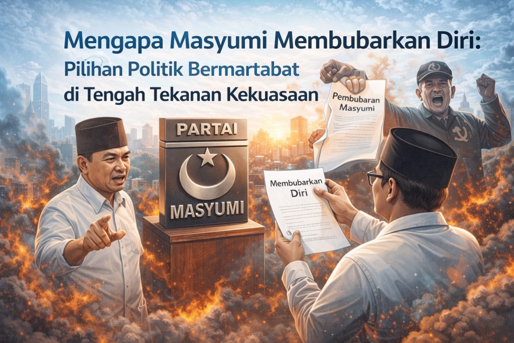 Mengapa Masyumi Membubarkan Diri: Pilihan Politik Bermartabat di Tengah Tekanan Kekuasaan Dalam sejarah politik Indonesia, pembubaran Partai Masyumi sering disalahpahami sebagai hasil semata dari tindakan represif negara. Padahal, jika ditelusuri lebih jernih, Masyumi justru mengambil langkah strategis dan bermartabat: membubarkan diri sebelum dijadikan partai terlarang. Keputusan ini bukan tanpa alasan, bukan pula karena kekalahan politik. […]